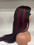 24" Black Straight with Purple Highlights HD Lace Front Wig - Edgy & Elegant