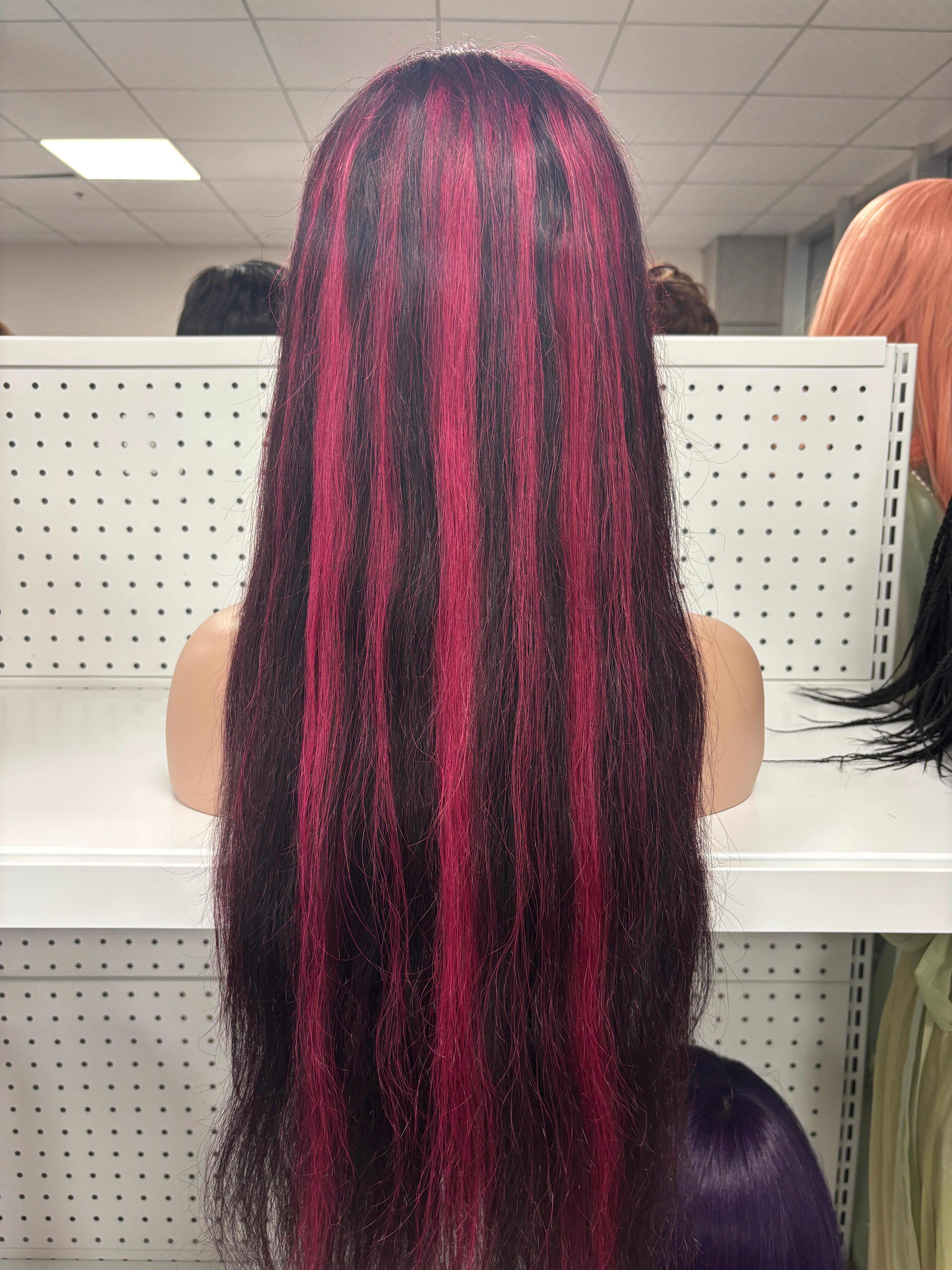 ✔ Hand-Placed Burgundy Highlights – Wine-red streaks that pop against jet-black